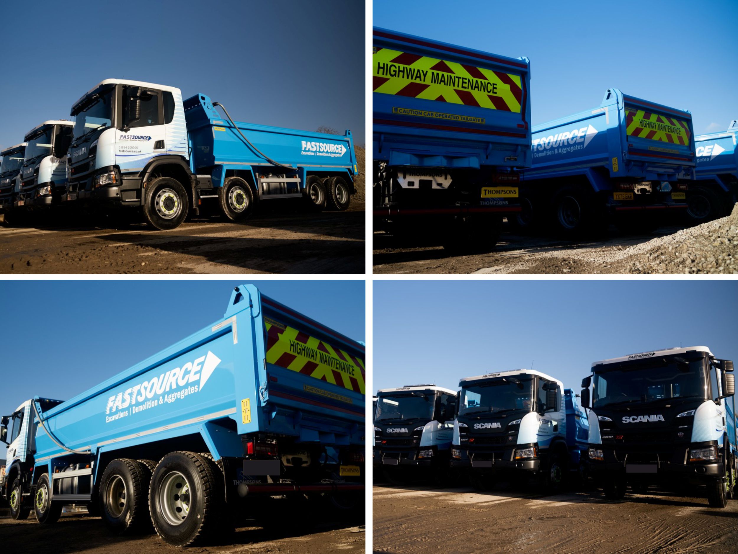 - Precision Cut Text: To ensure the branding remains sharp and legible even in the demanding environments of construction sites, the tipper bodies were finished with precision-cut vinyl lettering. This ensures the Fastsource name is clearly visible from any angle on the move.