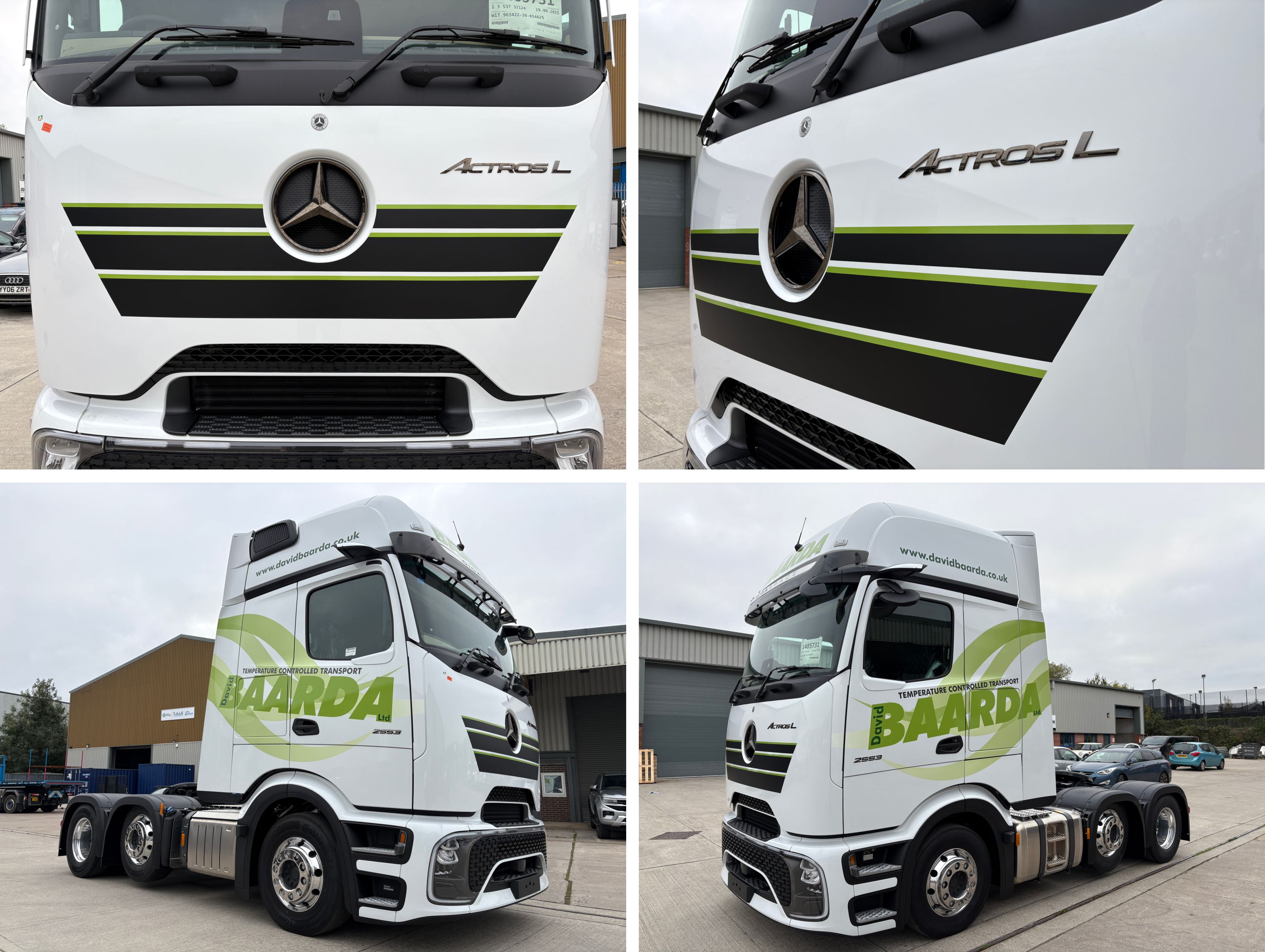 We’re excited to mark the return of David Baarda with their two brand-new Mercedes Actros Pro Gigaspace cabs. Featuring custom commercial vehicle wraps designed and installed by Paul Turner Signwriters Ltd.